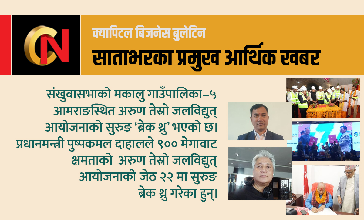 क्यापिटल नेपालको मुख्य आर्थिक समाचारलाई प्राथमिकता दिएर सुरु गरेको साताभरका प्रमुख आर्थिक खबर नामक स्तम्भ यस्ता छन्, संक्षेपमा साताभरका मुख्य–मुख्य आर्थिक समाचारः