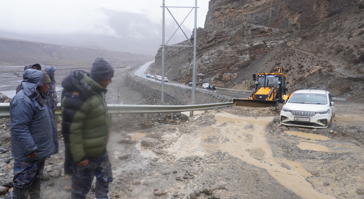 अवरुद्ध जोमसोम–कागबेनी सडकको आज बिहान प्रमुख जिल्ला अधिकारी विष्णुप्रसाद भुसाल, सशस्त्र प्रहरी नायब उपरीक्षक भेषराज गिरी र प्रहरी नायब उपरीक्षक छिरिङ किप्पा लामालगायतका सुरक्षाकर्मीले अवलोकन गरे। जोमसोम–कागबेनी भासिएको सडक मर्मत गरी सञ्चालनमा ल्याउन दुई÷तीन दिन लाग्नसक्ने जिल्ला प्रशासन कार्यालय मुस्ताङले जनाएको छ।–रासस
