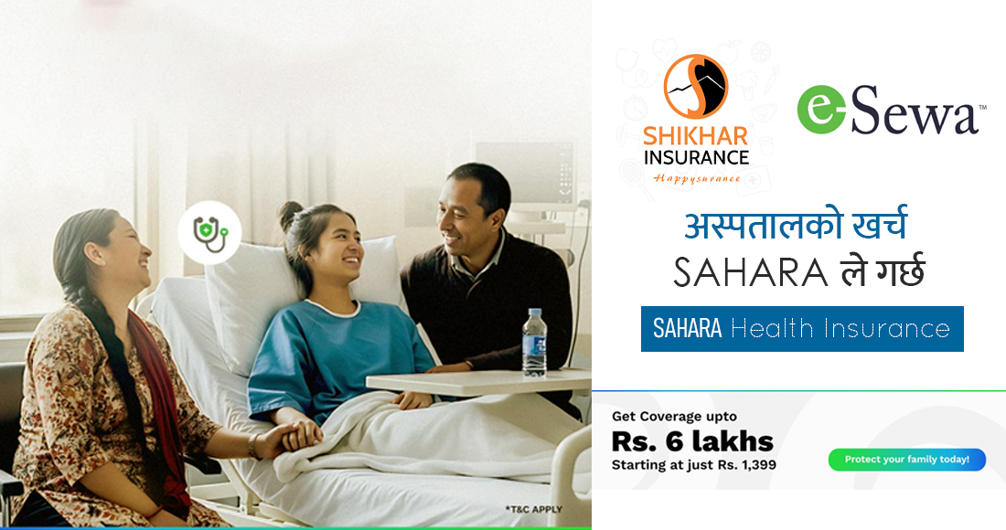 काठमाडौं। नेपालको अग्रणी डिजिटल भुक्तानी सेवा प्रदायक इसेवा र प्रमुख निर्जीवन बिमा प्रदायक शिखर इन्स्योरेन्स कम्पनी लिमिटेडको सहकार्यमा नेपालीको स्वास्थ्य सुरक्षालाई लक्षित गर्दै नयाँ स्वास्थ्य बिमा योजना ‘सहारा हेल्थ इन्स्योरेन्स’ सार्वजनिक गरिएको छ।