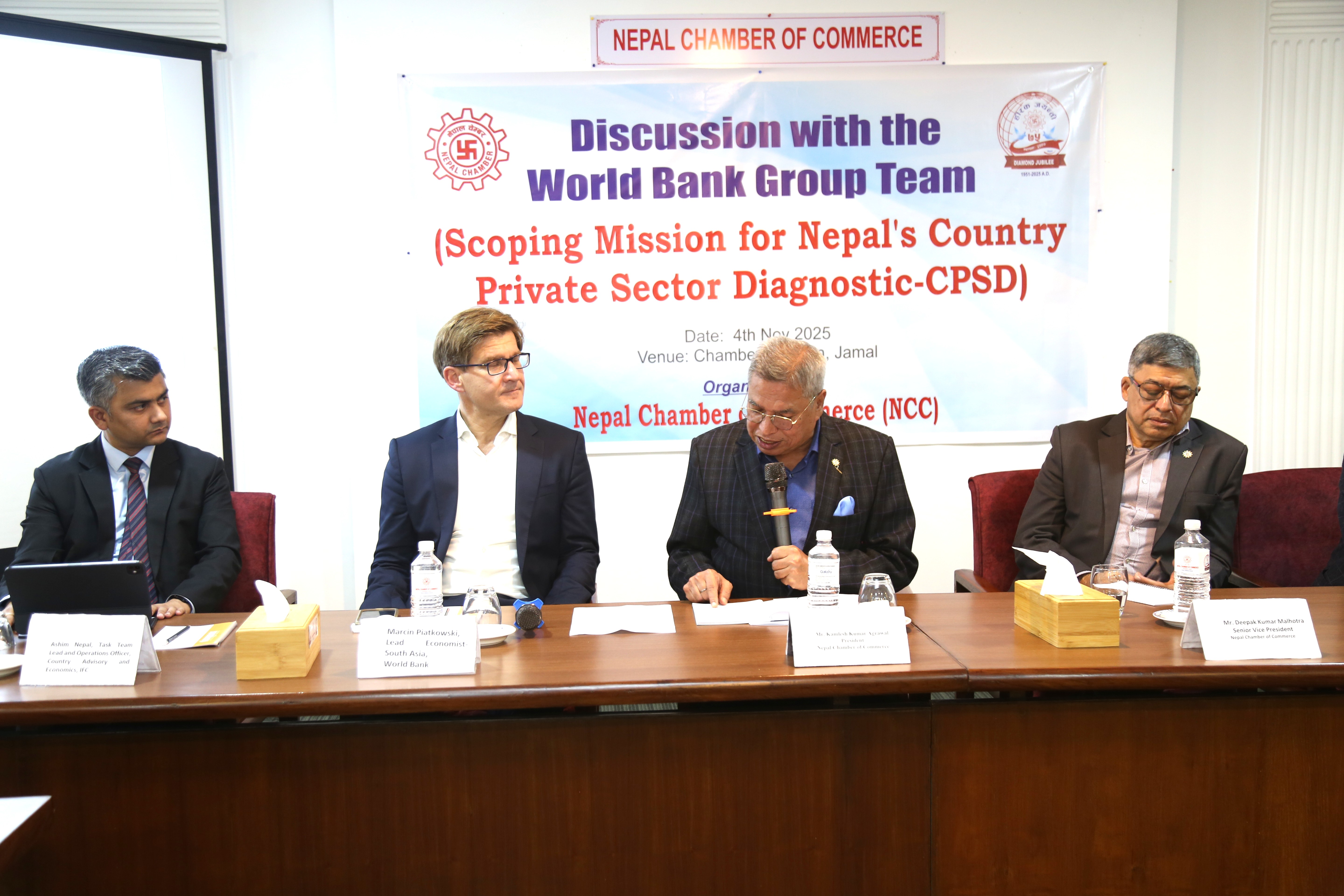 जमलस्थित चेम्बर भवनमा अयोजित कार्यक्रममा चेम्बरका अध्यक्ष कमलेश कुमार अग्रवाल, पदाधिकारी, विभिन्न समितिका सभापति तथा उद्योगी–व्यवसायीहरु एवं विश्व बैंक समूहका साउथ एसिया लिड इकोनोमिस्ट मर्चिन पियाट्कोस्की नेतृत्वको टोलीले सहभागिता जनाएको थियो।