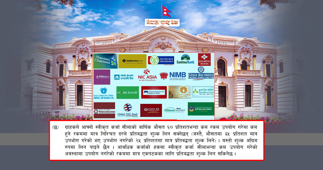 यी शुल्कलाई बैंकहरूले प्रशासनिक शुल्कको दायराभन्दा बाहिर राख्दै कोषको लागत र स्रोत व्यवस्थापनको तर्क दिने गरेका छन्। सबैभन्दा महत्वपूर्ण कुरा नियामकले यस्तो शुल्कलाई सर्तसहित वैधानिकता प्रदान गरेको छ। यसले उपयोग नगरिएको ऋणको समेत शुल्क तिर्नुपर्ने बाध्यता ग्राहकमाथि परेको छ।