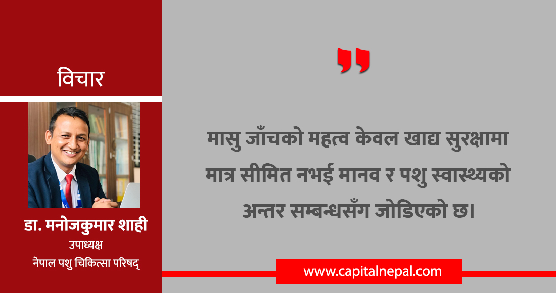 मासु जाँच तथा बधशाला ऐन, २०५५ को संशोधन र देशव्यापी कार्यान्वयन मानव जगतलाई स्वस्थ राख्न र गुणस्तरीय उपभोगको अधिकार सुनिश्चित गर्न अपरिहार्य छ। स्वच्छ मासु नपाएर उपभोक्ताहरू मासु खान छाड्ने अवस्थामा पुग्नुले पनि यो ऐनको महत्व र आवश्यकतालाई पुनः स्थापित गरेको छ। यो विषयलाई अब राजनीतिक इच्छाशक्ति र स्रोतको व्यवस्थापनसहित गम्भीरतापूर्वक अगाडि बढाउनु आवश्यक छ।