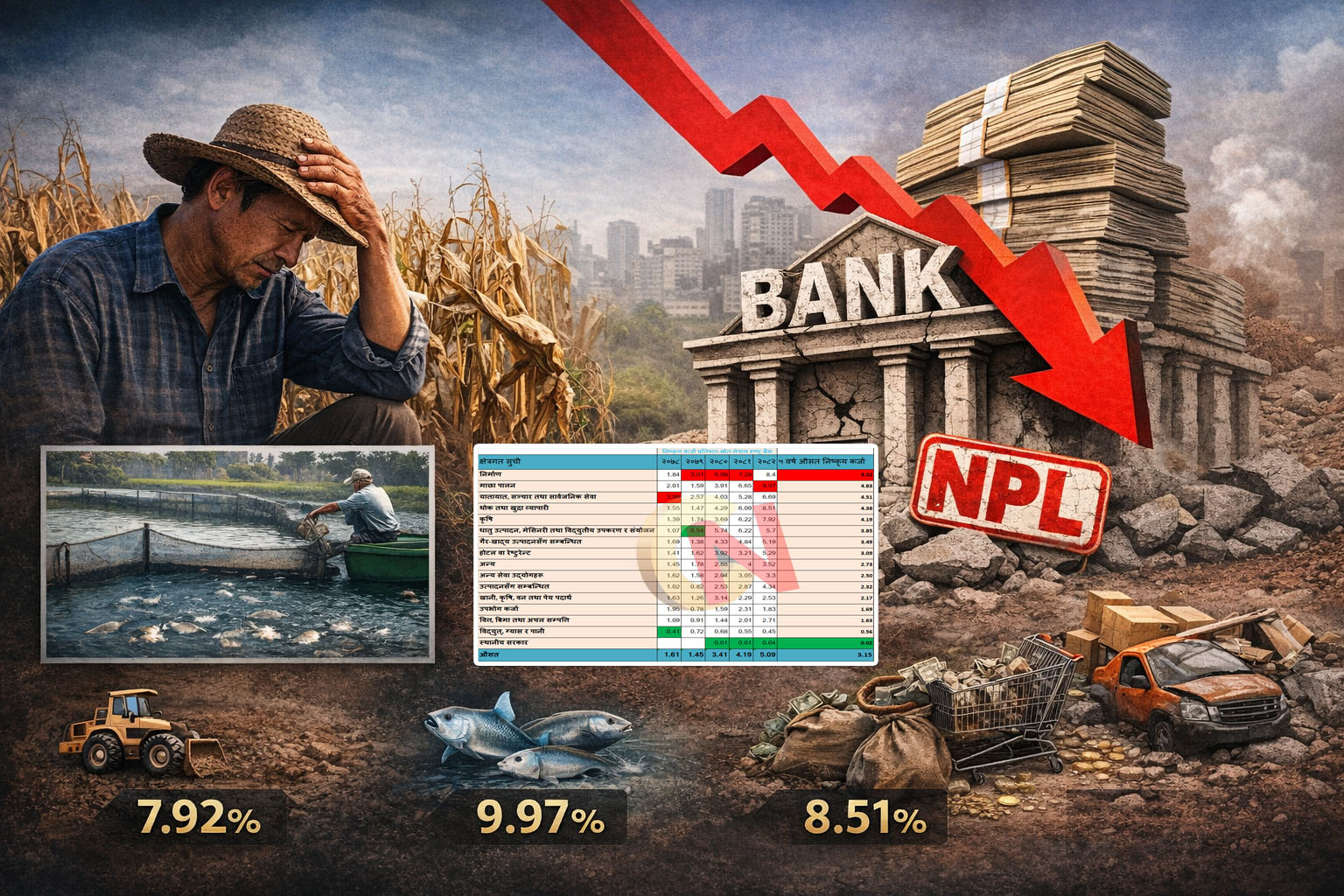 नियामकले प्राथमिकता तोकेका कृषि र साना व्यवसायजस्ता क्षेत्र नै खराब कर्जाका मुख्य स्रोत बन्न पुगेका छन्। नेपालको अर्थतन्त्रमा कृषि र माछापालन क्षेत्रको महत्त्वपूर्ण स्थान रहे पनि यी क्षेत्रमा खराब कर्जाको अनुपात चिन्ताजनक रूपमा बढेको छ।