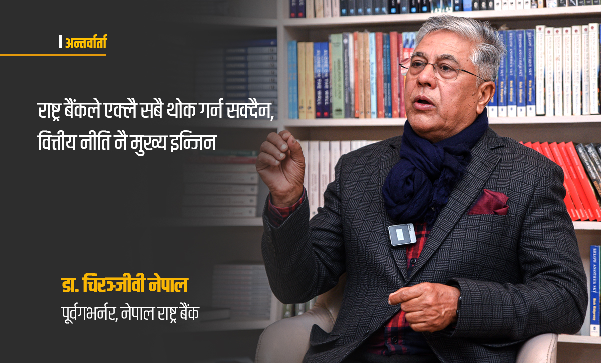 ब्याजदरको सन्तुलन, पुँजी पलायनको जोखिम र ऋण नतिर्ने अराजक प्रवृत्तिले निम्त्याउन सक्ने गम्भीर संकटबारे स्पष्ट दृष्टिकोण राखेका पूर्वगभर्नरसँग नेपालको वर्तमान आर्थिक परिदृश्य, राष्ट्र बैंकको स्वायत्ततामाथि हुने राजनीतिक हस्तक्षेप र युवा पुस्तामा देखिएको सामाजिक असन्तुष्टिको प्रभावबारे क्यपिटल नेपालले विशेष कुराकानी गरेको छ। यिनै समसामयिक विषय, राष्ट्र बैंकको स्वायत्तता, सहकारी संकट र भावी आर्थिक दिशाबारे राष्ट्र बैंकका पूर्वगभर्नर डा. नेपालसँग क्यापिटलकर्मी दिलु कार्कीले गरेको कुराकानीको सम्पादित अंशः