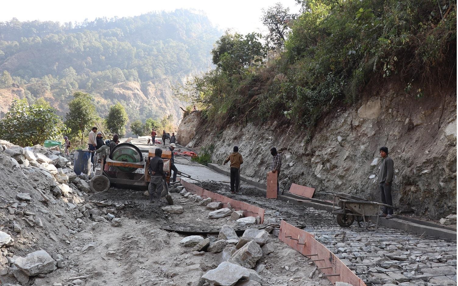 योजनामार्फत हाल तीनदेखि ४ मिटर फराकिलो सडकलाई ६ मिटरका दरले फराकिलो बनाएर, नाली, पर्खाल निर्माण, ३४० मिटरमा ढलान र ६० मिटर ग्राभेल गर्न थालिएको अन्नपूर्ण गाउँपालिकाका प्राविधिक गौरव भट्टले बताए। फराकिलो पार्ने, नाली र पर्खाल निर्माण सकेर ढलान गर्न थालिएको उनले बताए। हाल तीनदेखि चार मिटर फराकिलो सडकमा जिप, मोटरसाइकल र ट्याक्टर मात्र चल्छन्। साँघुरो, घुम्ती र ग्रेड नमिलेको सडकमा जोखिमपूर्ण यात्रा गर्नुपर्ने बाध्यता छ।
