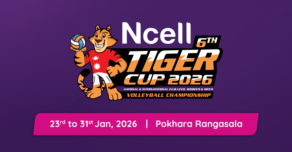 काठमाडौं। एनसेलले शुक्रबारदेखि पोखरामा सुरु हुँदै गरेको छैठौं टाइगर कप राष्ट्रिय तथा अन्तर्राष्ट्रिय आमन्त्रित क्लब भलिबल प्रतियोगिताको मुख्य प्रायोजकको रूपमा सहकार्य गरेको छ।