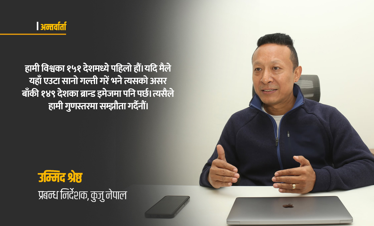 यसमा केही हदसम्म सरकारको भूमिका, विशेषगरी नीति तहको भूमिका आवश्यक देखिन्छ। कुन स्तर र मापदण्ड पूरा गरेका ब्रान्डलाई बजार प्रवेश दिने भन्ने स्पष्ट नीति आउनु जरुरी छ। अहिले ट्रान्सफर्मेसनको चरणमा भएकाले सरकार पनि विस्तारै नीति लिएर आउला भन्ने अपेक्षा गर्न सकिन्छ। भविष्यमा कम्तीमा यति स्ट्यान्डर्ड पूरा गरेका ब्रान्डलाई मात्र प्रवेश दिने भन्ने स्पष्ट मापदण्ड आयो भने बजार आफैं क्रमशः सुधार हुँदै जान्छ।