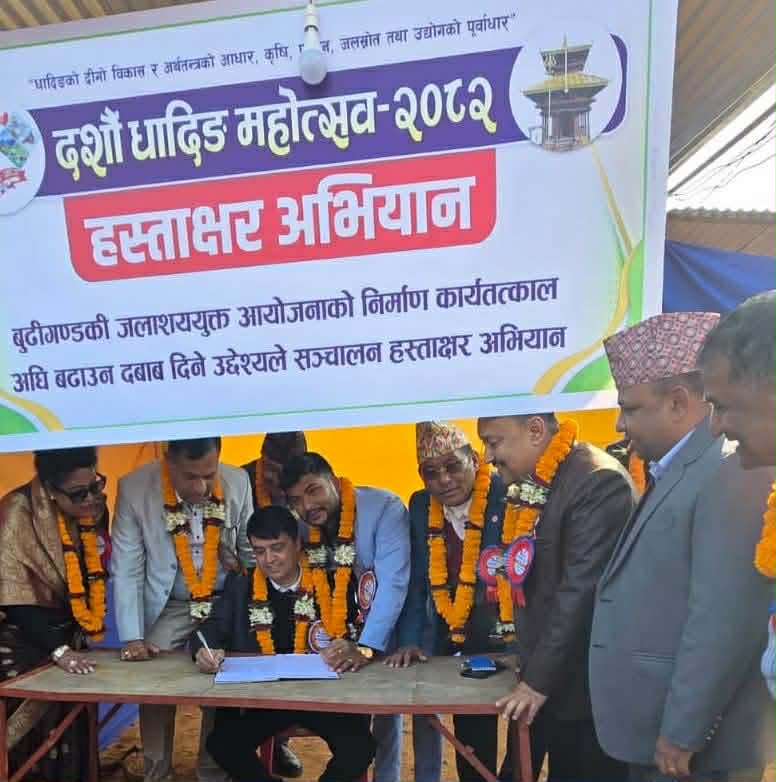 धादिङ उद्योग वाणिज्य संघले आयोजना गरेको १०औँ धादिङ महोत्सवको उद्घाटन समारोहमा बोल्दै अध्यक्ष ढकालले लामो समयदेखि चर्चामा रहेको १२०० मेगावाट क्षमताको बुढीगण्डकी जलासाययुक्त जलविद्युत आयोजना अगाडि बढाउनुपर्नेमा विशेष जोड दिए। साथै उनले सो अवसरमा बुढीगण्डकी जलाशययुक्त जलविद्युत आयोजनाको निर्माण तत्काल अघि बढाउन दबाब दिने उदेश्यले सञ्चालन गरिएको हस्ताक्षर अभियानमा हस्ताक्षर समेत गरे।