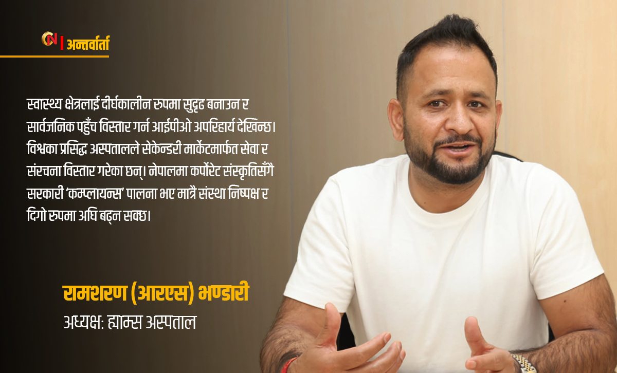 स्वास्थ्य सेवा आईपीओमार्फत सेकेन्डरी मार्केटमा नगईकन बजारको भोल्युम बढाउन सकिँदैन। स्वास्थ्य नीति र नियम पालना हुँदै अस्पताल स्वास्थ्य मन्त्रालयको गाइडलाइनअनुसार सञ्चालन हुन्छन्। धितोपत्र बोर्डजस्ता सरकारका निकायले पनि नियमन गर्छन्। यसले गर्दा राज्यको अनुगमन अझ स्पष्ट हुन्छ र पारदर्शिता सुनिश्चित हुन्छ। यसप्रति आमनागरिकको विश्वास बन्नुका साथै ग्यारेन्टी पनि सुनिश्चित हुन्छ। अहिले आईपीओमा धेरै बैंक गएका छन्। आईपीओमा जाँदा आमनागरिक र संस्थाबीच विश्वास बढ्छ भने जित्ने पक्ष पब्लिक र नियमन दुवैको विश्वास कायम गर्ने संस्था नै हुन्छ। नागरिकसँग र संस्थाले दुवैले जित हासिल गर्नुपर्छ भन्ने उद्देश्यले नै ह्याम्स अस्पताल आईपीओ जारी गर्ने तयारीमा छ।