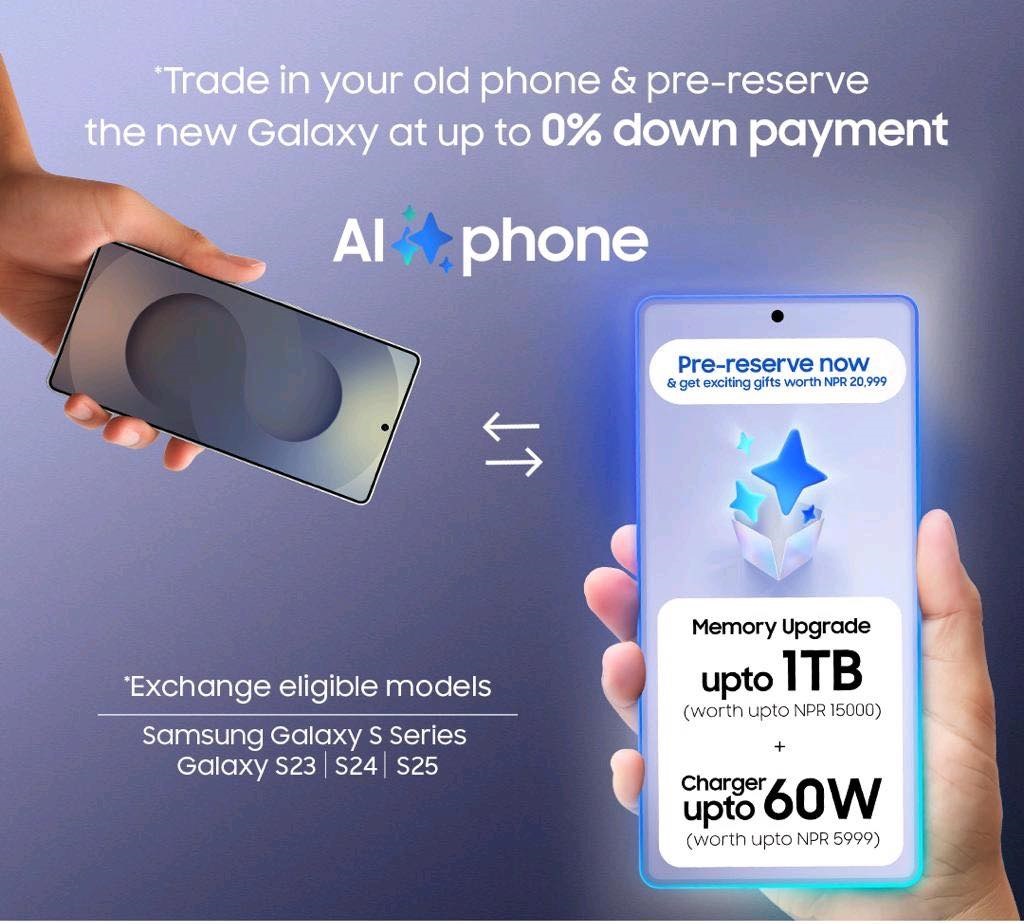 एक्सचेन्ज सुविधा ग्यालेक्सी एस२३, एस२४ तथा एस२५मा लागू हुनेछ। कम्पनीका अनुसार आईडिभाइस १४, १५ ७ १६ पनि पाउने सकिनेछ। हेन्ड रेजर अफर २३ देखि २६ फेब्रुअरीसम्म मात्र मान्य हुनेछ।