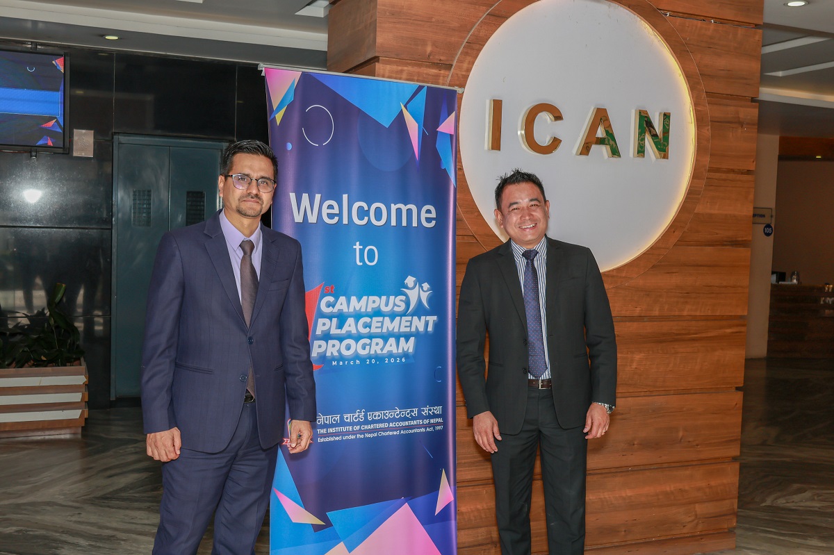 काठमाडौं। नेपाल चार्टर्ड एकाउन्टेन्ट संस्था (आइक्यान) ले पहिलो क्याम्पस प्लेसमेन्ट कार्यक्रम सम्पन्न गरेको छ। यसबाट रोजगारीको आकांक्षा राख्ने पेसाकर्मी र अग्रणी रोजगारदाताबीच प्रत्यक्ष सम्पर्क निर्माण गर्ने ऐतिहासिक उपलब्धि हासिल भएको जनाएको छ।