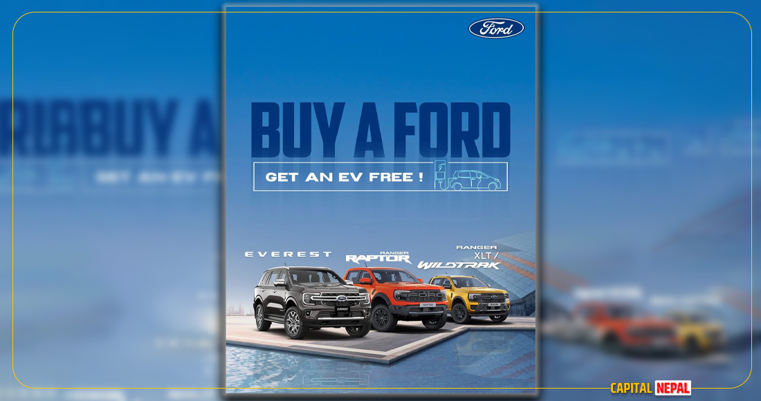फोर्डले विशेष अफरअन्तर्गत आफ्ना कुनै पनि प्रिमियम गाडी खरिद गर्दा एक इलेक्ट्रिक भेहिकल निःशुल्क प्रदान गर्ने योजना सार्वजनिक गरेको जिओ फोर्डका प्रबन्ध निर्देशक आकाश गोल्छाले बताए।