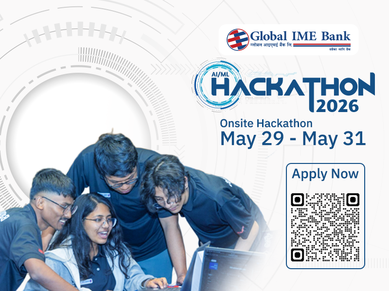 बैंकले कृक्रिम बुद्धिमत्ता (एआई) र मेसिन लर्निङ (एमएल) सम्बन्धी ग्लोबल आइएमई एआई÷एमएल ह्याकाथन दोश्रो संस्करण २०२६ आगामि मे महिनाको २९–३१ मा आयोजना गर्नेछ। उक्त प्रतियोगितामा सहभागी हुन प्रविधिमा रुची राख्ने विद्यार्थी, स्टार्टअप, डेभलपर, इन्जिनियर, डेटा वैज्ञानिक, अनुसन्धानकर्ता तथा प्रविधि क्षेत्रका पेशाकर्मीहरुका लागि आवेदन खुल्ला गरिएको छ।