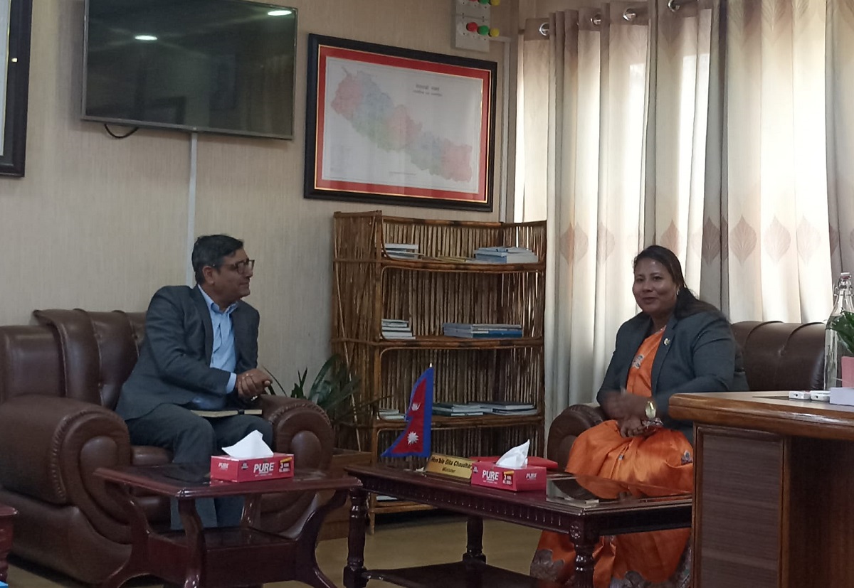 काठमाडौं। वन तथा वातावरण र कृषि तथा पशुपन्छी विकास मन्त्री गीता चौधरी र पूर्व मन्त्री माधवप्रसाद चौलागाई बिच भेटवार्ता भएको छ। मन्त्री चौधरी र चौलागाईबीच मंगलबार वन मन्त्रालयमा भेटवार्ता भएको हो। उक्त भेटमा पूर्व मन्त्री चौलागाईले आफ्नो कार्यकालको प्रतिवेदन मन्त्रीलाई बुझाउनुका साथै वनका नीतिगत समस्या, विकाससँगै वन संरक्षण लगायत विषयमा छलफल भएको हो।
