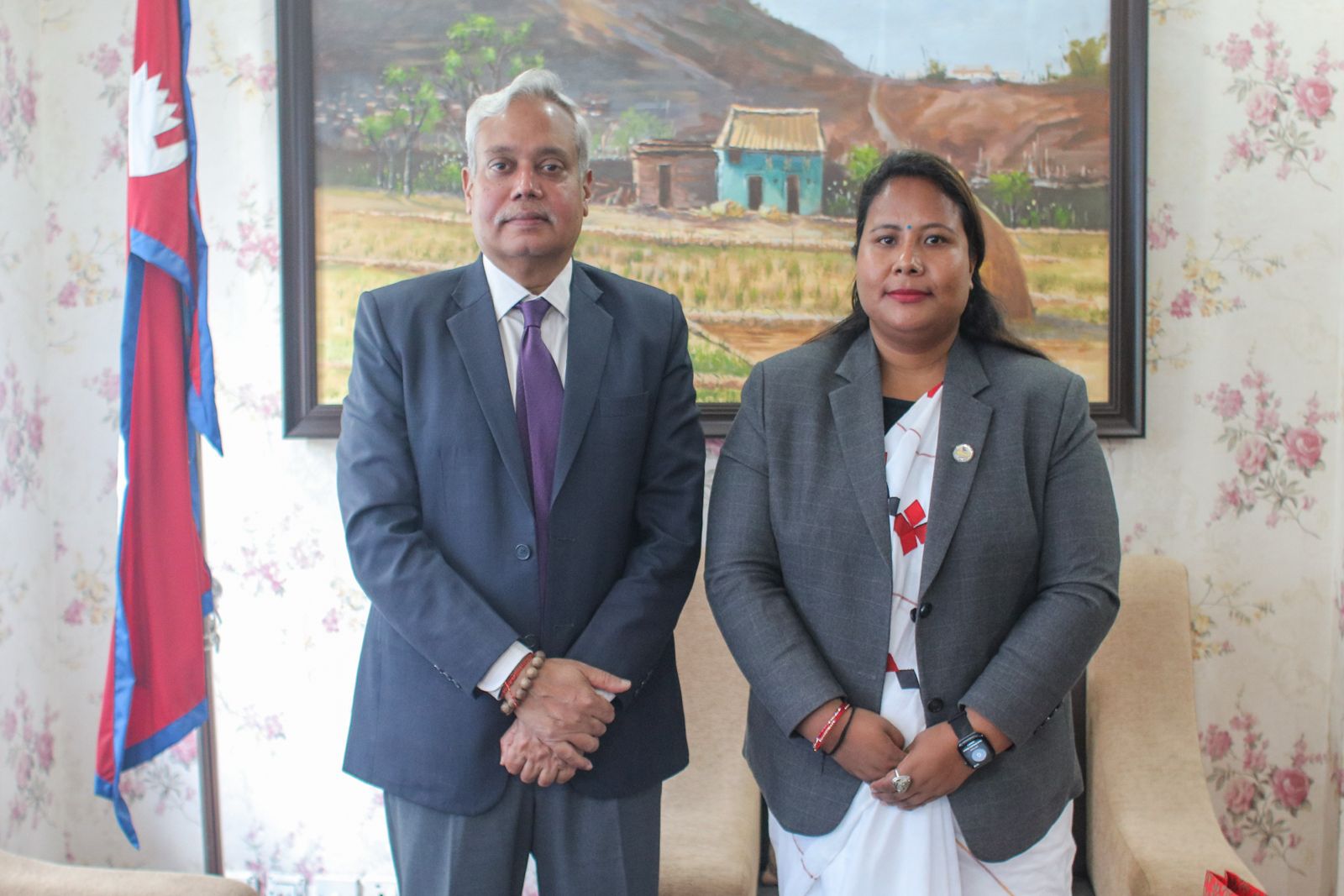 काठमाडौं। कृषि तथा पशुपन्छी विकास र वन तथा वातावरण मन्त्री गिता चौधरी र नेपालका लागि भारतीय राजदूत नवीन श्रीवास्तवबीच शिष्टाचार भेटवार्ता भएको छ। कृषि मन्त्रालयमा भएको भेटवार्तामा द्विपक्षीय कृषि सहकार्य, विशेषगरी रासायनिक मल आपूर्तिसम्बन्धी विषयमा छलफल भएको हो।