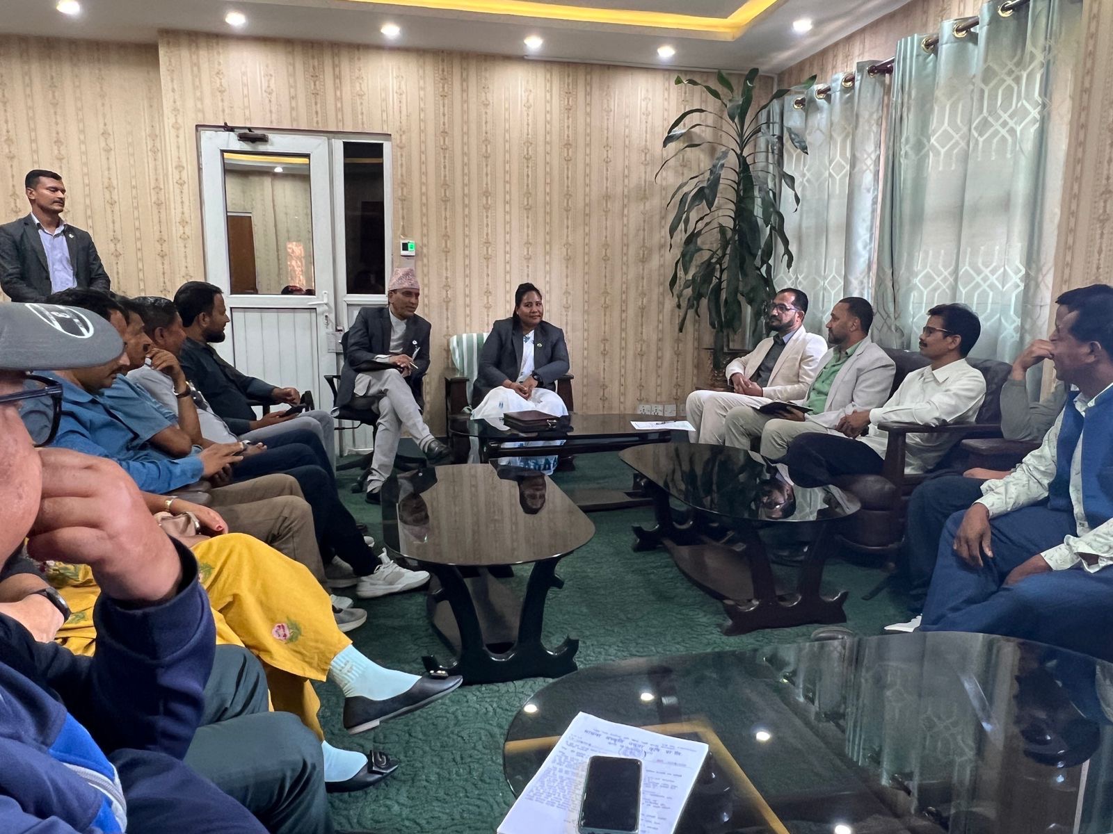 काठमाडौं। कृषि तथा पशुपन्छी विकास र वन तथा वातावरण मन्त्री गीता चौधरीले केरा उत्पादक किसानसँग भेटवार्ता गरेका छन। मन्त्री चौधरीले किसानसँगको भेटवार्तामा केरा उत्पादन, बजारीकरण, मल आपूर्तिलगायत विषयमा छलफल भएको हो।